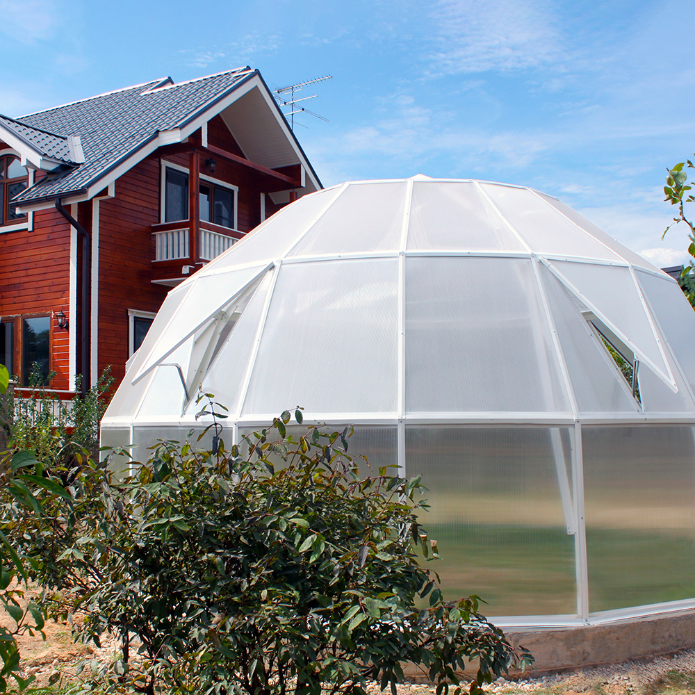 Изначально теплицы GLASS HOUSE разрабатывались под покрытие стеклом, поэтому запас прочности конструкции позволяет с легкостью выдерживать повышенные ветровые и снеговые нагрузки!